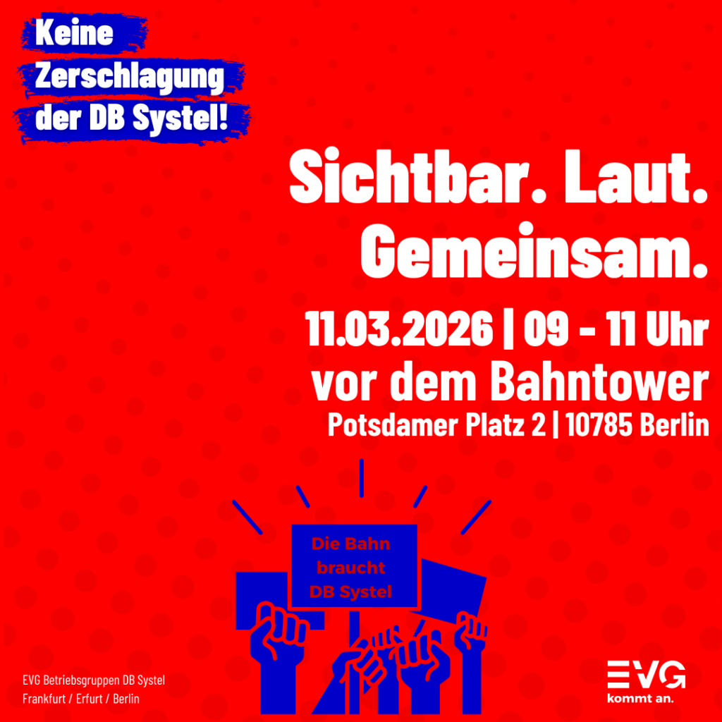Am Mittwoch, dem 11.03.2026 findet in Berlin ein Spitzentreffen statt, bei dem ausser den DB-Vorständen Evelyn Palla und Martin Seiler auch die KBR-Vorsitzende Heike Moll und die GBR-Vorsitzenden von DB Regio, Ralf Damde, und DB InfraGO, Thomas Brandt, teilnehmen sollen. Von Seiten des GBR der DB Systel GmbH sind Burkhard Nobbe und Stefan Dunkel eingeladen.