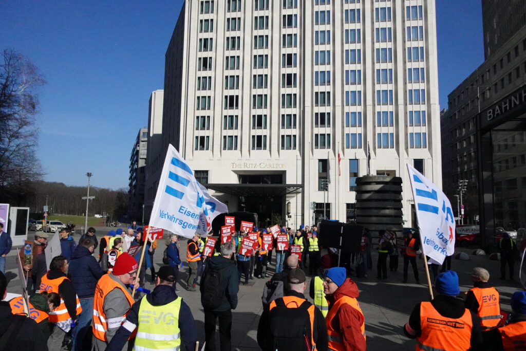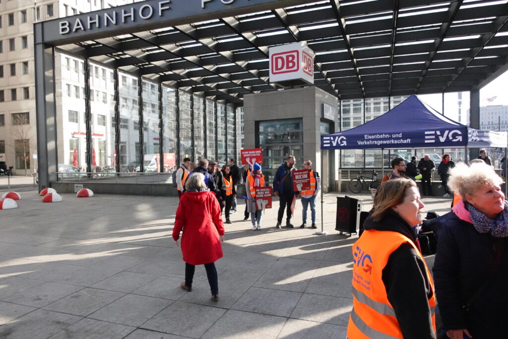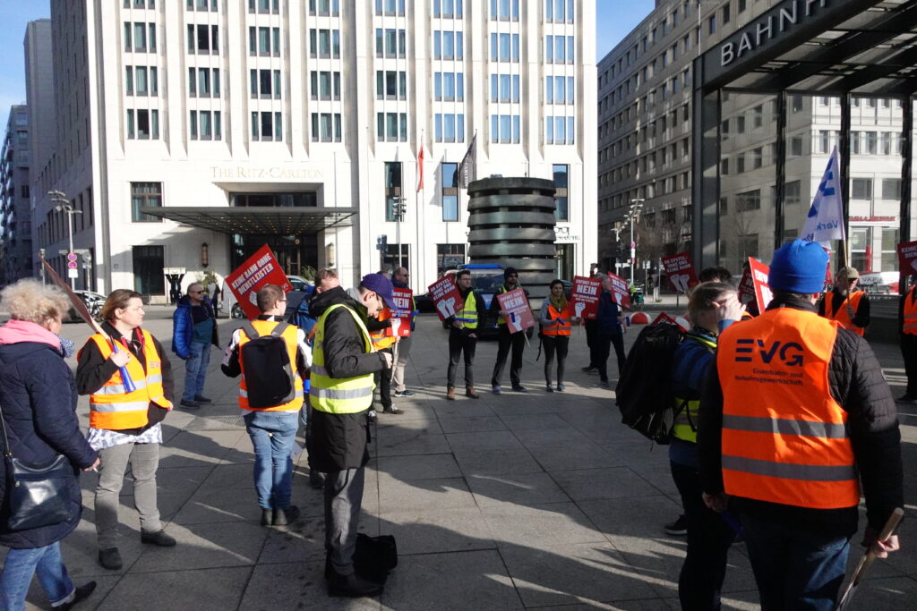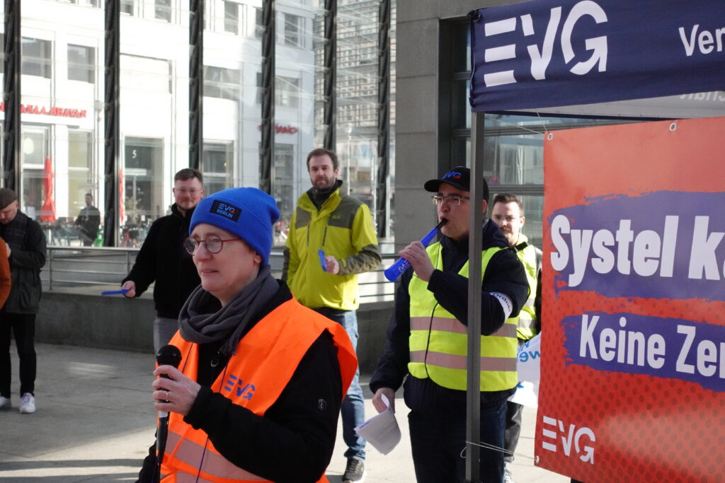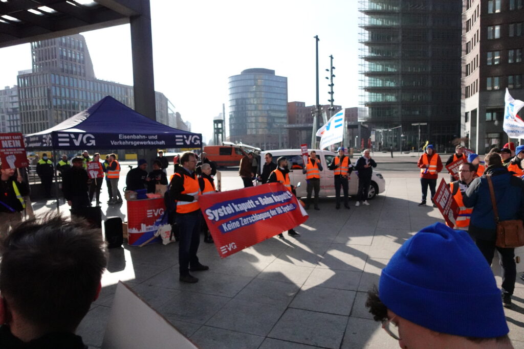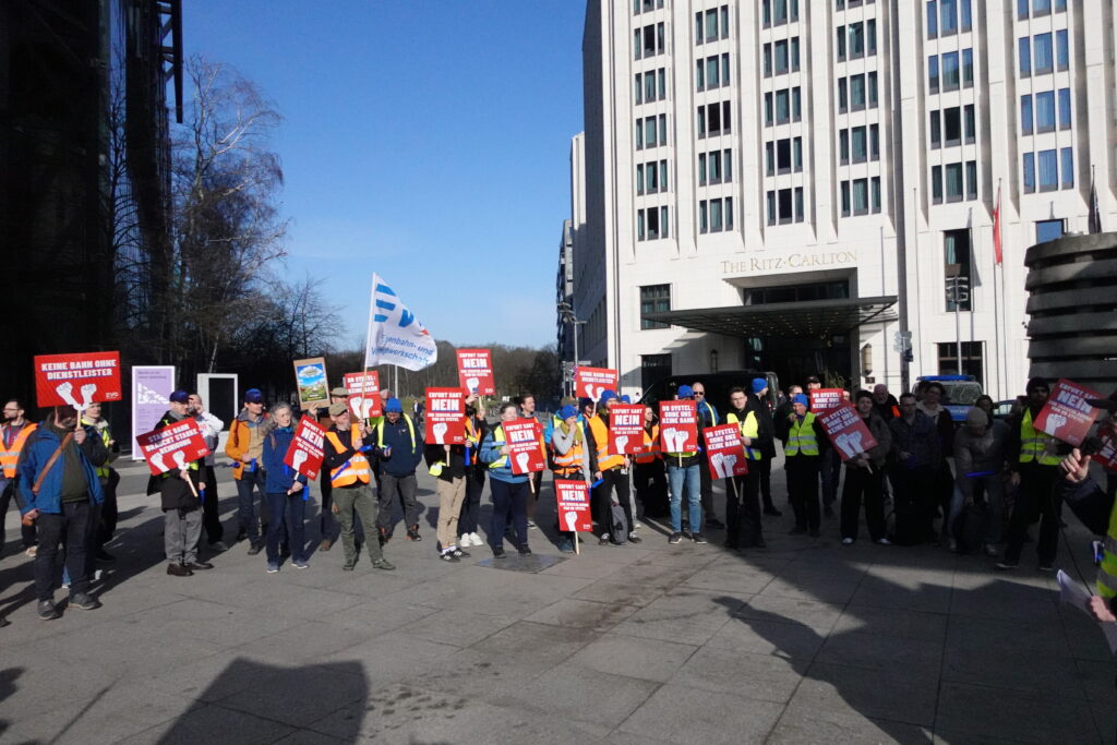 Heute, am 11.03.2026, haben wir uns in Berlin vor dem DB-Tower versammelt – aufgerufen von den DB Systel Betriebsgruppen Berlin, Erfurt und Frankfurt – um unseren Verhandlern von EVG und GBR Power mitzugeben und der Konzernleitung unseren Unmut über die Pläne zur Zerschlagung der Systel zu verdeutlichen. Vielen Dank an alle, die vor Ort waren oder im Hintergrund an der Organisation mitgewirkt haben!